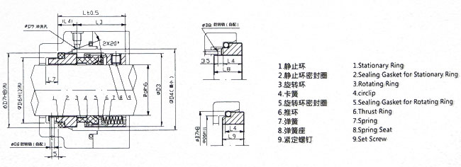 用途:用于化工、石油化工、煉油、制冷、制藥、造紙、給排水、污水處理等工業泵類、反應釜、壓縮機等設備的旋轉軸密封,介質為水、油、有機溶劑及其它弱腐蝕性液體。