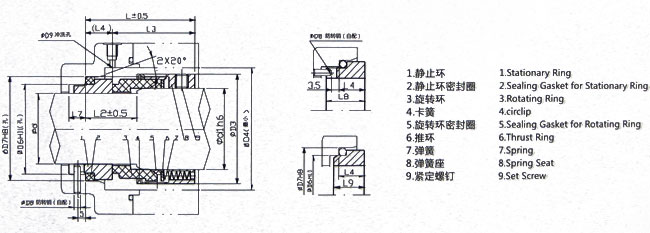用途:用于化工、石油化工、煉油、制冷、制藥、造紙、給排水、污水處理等工業(yè)泵類、反應釜、壓縮機等設備的旋轉軸密封,介質為水、油、有機溶劑及其它弱腐蝕性液體。