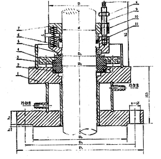 外裝、單端面、小彈簧、平衡型,靜環采用密封墊密封,使用于一般場合的反應釜攪拌軸出的動密封